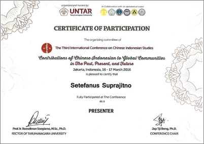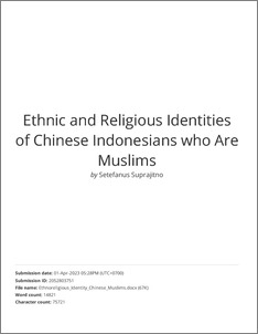 Suprajitno, Setefanus (2016) Ethnic and Religious Identities of Chinese Indonesians who Are Muslims. In: The Third International Conference on Chinese Indonesian Studies, 16-03-2016 - 16-03-2016, Jakarta - Indonesia.